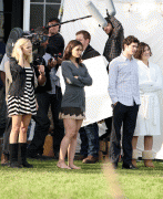 Filming with dianna agron, Ana Paquin, Katie Holmes, Elijah wood and josh duhamel. Nov 18 intheirclothes, celeb city Nov 17 zimbio, celebcity,