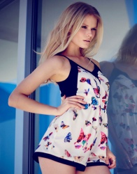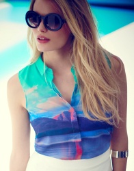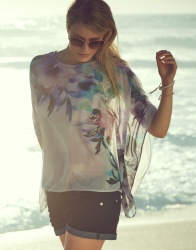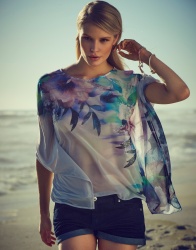 Or maybe you noticed her dancing barefoot and playing records in the Sexy Back Blues Tunic. Well everyone, meet Alena Blohm — a German born, New York living, globe trotting mega model. Not only does Alena possess that beautifully raw and authentic ’70s look, she has the laid back personality to match. Always smiling and flashing peace signs, this positively mellow babe was as much of a pleasure to meet as she was to photograph.