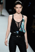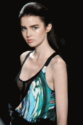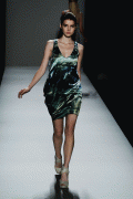 Contrasted with her pale skin and the colours of the outfit at Nicole Miller it's rocking