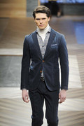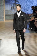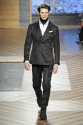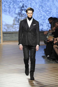 A model walks the runway at the Hugo by Hugo Boss Autumn/Winter 2012 fashion show during Mercedes-Benz Fashion Week Berlin at Gemaldegalerie on January 19, 2012 in Berlin, Germany. (January 18, 2012 - Photo by Peter Michael Dills/Getty Images Europe)