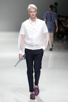 A model backstage at the Ovadia & Sons fashion show during Mercedes-Benz Fashion Week Spring 2015at Pier 59 on September 8, 2014 in New York City. (September 7, 2014 - Source: Ilya S. Savenok/Getty Images North America)
