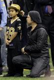 Brad Pitt and Maddox @ NFL football divisional playoff game between the Arizona Cardinals and New Orleans Saints in New Orleans (Jan. 16) - celebutopia.