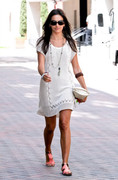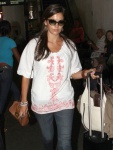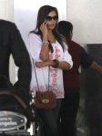 I like her airport outfit - except for the shoes (don't care for that fringing thing). But the top, jeans, bag and sunglasses are all nice.