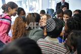 French First Lady Carla Bruni-Sarkozy (C) and Bondy's mayor Gilbert Roger listen childrens singing during her visit to a music classroom at Olympe de Gouges School in Bondy, outside Paris on November 26, 2009. AFP PHOTO / POOL / ERIC FEFERBERG (Photo credit should read ERIC FEFERBERG/AFP/Getty Images)