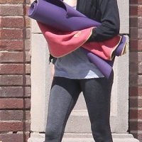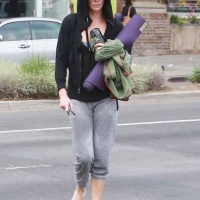 Make-up free Charlize Theron cracked a zen smile following her class at YogaWorks in West Hollywood Wednesday