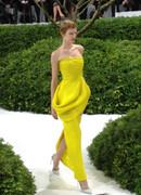 The positive thing is that you can tell he's establishing "his" Dior look by re-using references we have seen in his previous collections. There were a couple of nice looks, including the suits and those egg-shaped dresses. My favorite dress was a beautiful yellow one. Can't wait for HQs of it.