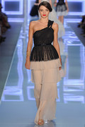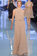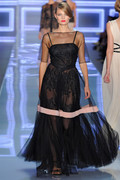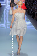 A kimono sleeve on the jackets released the Dior woman from rigorous tailoring and skirts were puffed up in featherweight fabrics. The show, with a set of the gray and gilded salon architecture, generally showed a youthful, but classic, couture attitude.