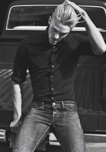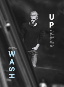 Wilhelmina model Clark Bockelman is photographed by Shaun Hartas and styled by Matthew Marden in the denim story 'Wash Up' for the May 2014 issue of Details magazine.
