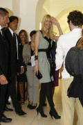 Claudia Schiffer and Alberta Ferretti during a store appearance to promote the the new fragrance of the Italian syilist Via dei Condotti in Rome, Italy on September 9, 2009.