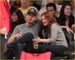 Drew Barrymore and her boyfriend, Will Kopelman, share a sweet kiss as they sit courtside at the Lakers Game, held on Wednesday (April 20) at the Staples Center in Los Angeles.
