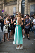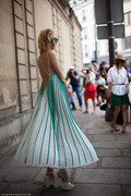 With the world going crazy over the 50s Mad Men trend, renovation is key. The wonderfully feminine Elena Perminova in a bright and colorful piece with a pin-up girl pattern looks simply adorable as she sways through photographers and spectators. A highlight in the crowd.