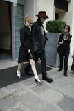 Wood pulls back her skirt, and on her upper thight, right next to her adorable red panties, is a black heart with a lightning bolt inside. "The black heart is for me," says Manson, "and the lightning bolt is for Bowie." He shows me a black heart he had tattooed on his inner wrist as an expression of his love for her.