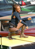 Who can forget the biker outfit : Tassles, Budweiser can attached to thigh, the metallic butt-extention space age outfit, Karen Mulder snake-like in black lace, Linda Evangelista w. a pink rockabilly hairdo, big white fur stola, skintight white dress and attitude.