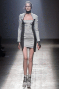A few nice pieces. Not-bad, not-bad. A bit Rick Owen-ish. One of the male models looks like a tooth pick. He should really eat.