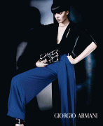 This is one of those ads that would make me stop in a magazine and consider to purchase something from Giorgio Armani, it sells the profuct so well. I think this is absolutely stuning Gorgeous! Black and Blue is one of my favorites color combinations and yes is not the most warm ad campaign for spring but it's one of the best of the season so far for me. She's a new girl and I found her face quite mesmerizing here and I applaud GA for giving such a big campaign to a new girl and she is holding her own as someone said here perfectly imo, I'm one of few that loves the wig I see, it puts even more edge to her look