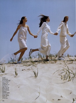 Golden Girls Photographer: Steven Meisel Fashion Editor: Grace Coddington Hair: Garren Make-Up: Pat McGrath Set Design: Marla Weinhoff Models: Amber Valletta, Carolyn Murphy and Kristen McMenamy