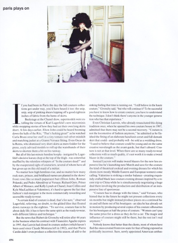 How To Wear Patterns and Prints Photographer: Steven Meisel Fashion Editor: Grace Coddington Hair: Garren Make-Up: Pat McGrath Set Design: Wm. Doig. Models: Carolyn Murphy and male models