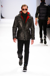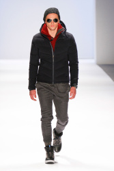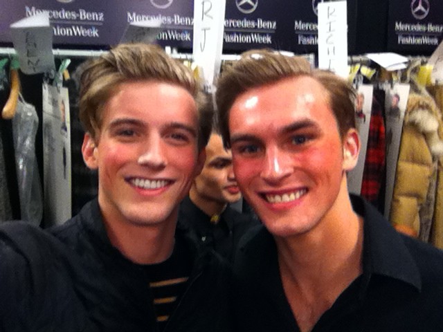 A model prepares backstage at the Nautica Men's Fall 2013 fashion show during Mercedes-Benz Fashion Week at The Stage at Lincoln Center on February 8, 2013 in New York City. (February 7, 2013 - Source: Michael Loccisano/Getty Images North America)