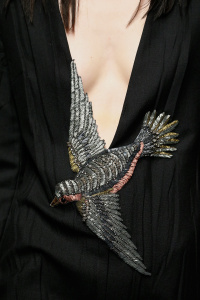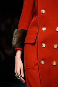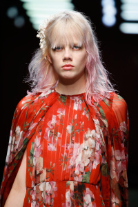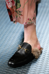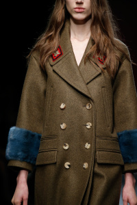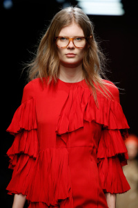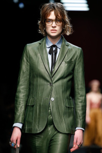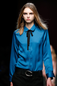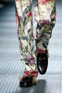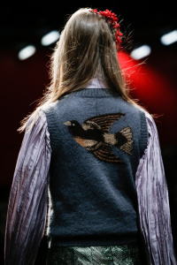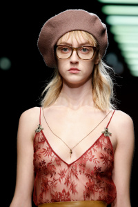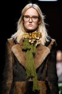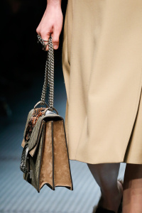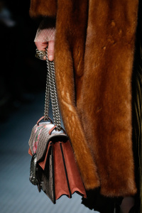 The Gucci press release for autumn/winter 2015 opened with a quote by the Italian philosopher Giorgio Agamben. It closed with another by Roland Barthes. It was evident that the new creative director Alessandro Michele wanted to forge a distance between his Gucci and its past. Watching Michele’s parade of lived in, pre-creased clothes, of heavy brocade coats, pleated chintzy chiffons and knackered furs in mildewed shades of soured cream and peat brown, you were struck by their absolute break with Gianini’s tenure, and the Gucci look we know, and used to love.