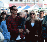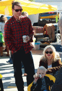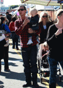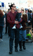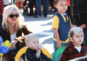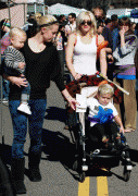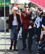 Gwen Stefani and Gavin Rossdale take their children Kingston and Zuma to the Hollywood Farmer's Market in Hollywood, CA. The boys get balloon hats.