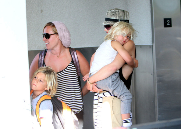 Gwen Stefani and her sons Kingston and Zuma arriving on a flight at LAX airport in Los Angeles, California on August 8, 2012.