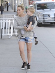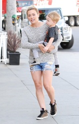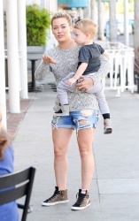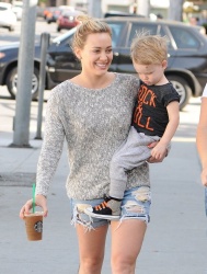 justjared.com Hilary Duff stops by Starbucks in Beverly Hills, California with her son Luca on May 6, 2014. zimbio.com
