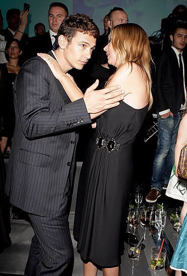 Last night at the fragrance launch in Milan, Frida seemed to be tempted by James' "seductive side" . . . either that, or she was having a really good time. Sure, she was playing a good hostess to the actor, but they were also photographed dancing together, chatting the night away on a couch, and even . . . dare I say . . . getting a little more touchy-feely than professionalism calls for. A full gallery below.