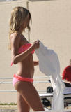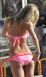 This former beauty pageant winner certainly has business interests and doing her best. Here’s a peek at what she had to bring to America this year while being part of a talented group of Australians showcasing their skills in the US, certainly a big market that can lap up anything that’s cool and hep. Here’s a good look at Jennifer in a ruffled hot pink and tangerine 2 piece bikini. It’s from her fashion label, and that’s why the added advertisement, it’s time to get noticed.