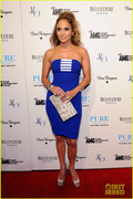 She looks absolutely sexy in that red dress, but i would chose different shoes. otherwise stunning Look.
