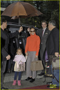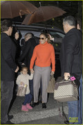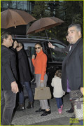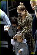 Jennifer Lopez dons a bright turtle neck while arriving at Ritz Carlton hotel with her boyfriend Casper Smart and her twins Max and Emme on Friday (October 12) in Berlin, Germany.