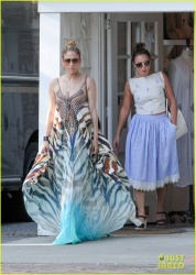 Jennifer Lopez looks flawless in a colorful, flowing dress while out shopping on Friday afternoon (July 11) in the Hamptons, New York.