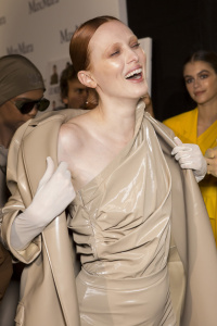 Omg that Michael Kors dress is hideous, but she looks radiant at all the shows. Her skin is just amazing.