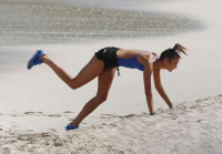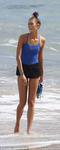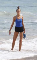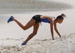 Karlie Kloss poses on the beach in Barths, where she's filming a new fitness DVD