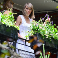Taylor Swift and BFF model, Karlie Kloss were spotted enjoying a sunny day in NYC together. They planted flowers in their Garden while laughing and giggling together. Taylor glowed in a short white dress and vibrant red lipstick while Karlie chose a loose fitting black dress for the outing.