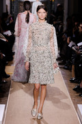 What model is she taking pictures with at Elie Saab, in the baby green colored dress, is it Martha Streck?