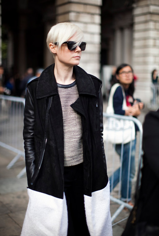 Love the touch of colour in that scarf (or blouse) - offsets the black ever so slightly, without compromising her rock-star-ness! :)