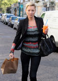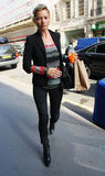 Kate Moss popped out for a drink with her man Jamie Hince yesterday in London, looking smart casual in her boots, jeans, blazer and knitted top.
