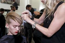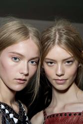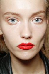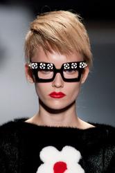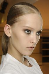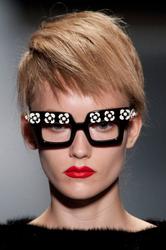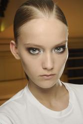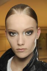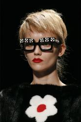 make up at Prada looked gorgeous on her... too bad those glasses covered all up.