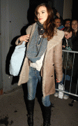 she looks adoooooorable in that coat! and i like her hair like that too.
