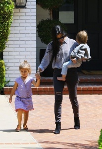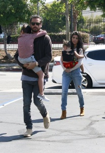 Scott Disick & Kourtney Kardashian seen at Roller Pink with their kids to film an episode of Keeping Up with the Kardashians on April 1, 2016 in Los Angeles, California