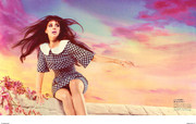Everywhere people claim that she has dark green eyes. I think she is with bright eyes. They have every colour in the them and indeed look different depending on the light and cloths.