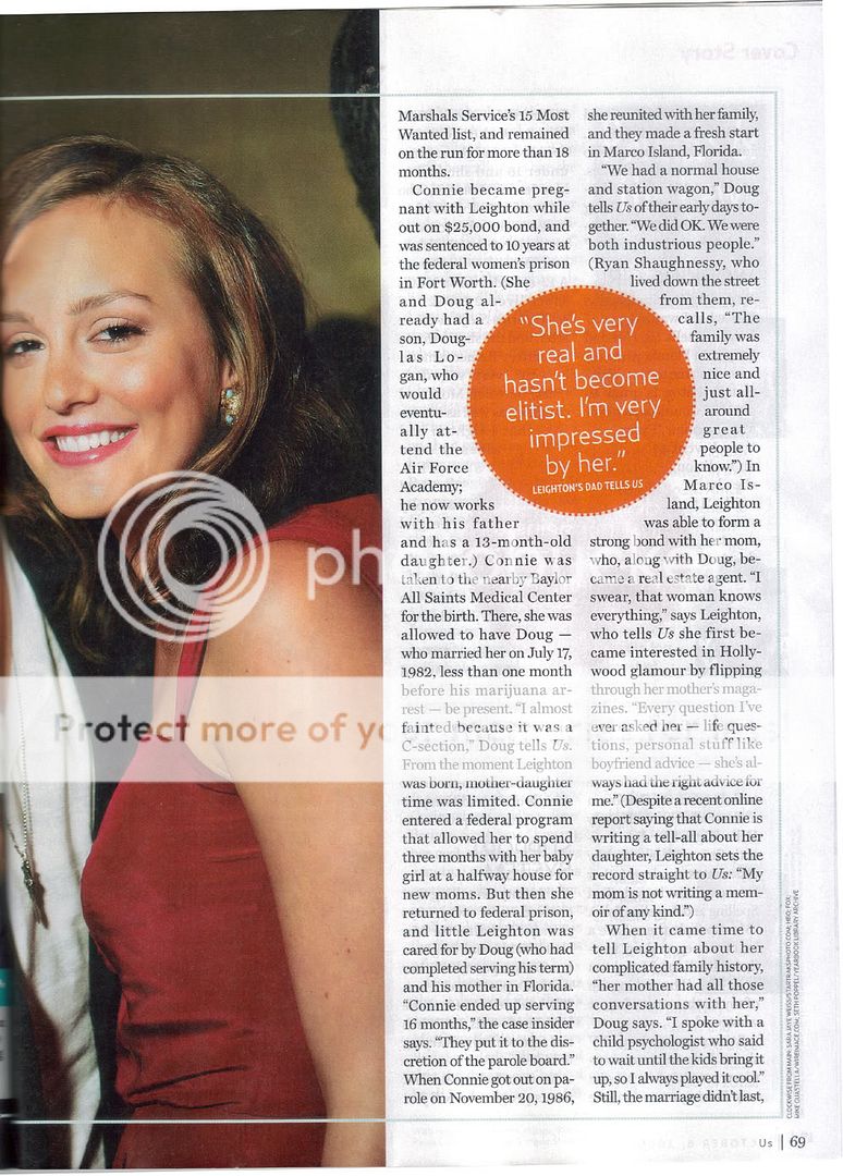 Meme7, I think she wasn't inteviewed in the tabloid. The tabloid was exposing her family's private "secrets" and I believe Leighton didn't contribute anything there.