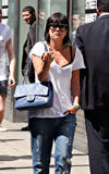 Lily was on a cigarette break and chatting to crew when she made a boob and her gown gaped open to reveal that she was not wearing a bra.