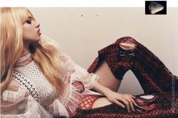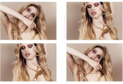 L.M.: I’m this kind of aristocratic, bambina, nouveau riche seductress. I don’t want to say anything rude…but I’m really tan and really blond, and [wearing a] really tiny polka dot bikini…yeah.