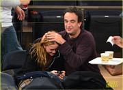 Mary-Kate Olsen gets a kiss on the face from her boyfriend Olivier Sarkozy while attending a New York Knicks game at Madison Square Garden on Friday (November 9) in New York City.
