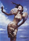 Hm, yes, she rocks this ed since it's all about exaggerating shapes, but she looks like a stick in every other pic I've seen. Gorgeous ed, though, and this girl is so unique, you can't help but look at her face.