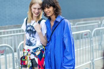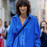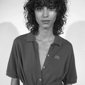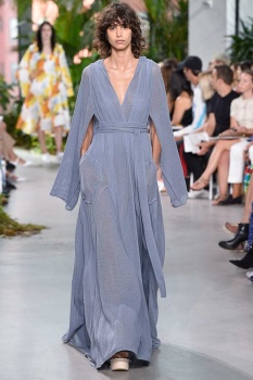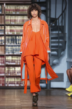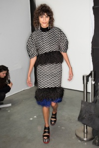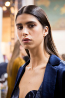 She was one of the few models who didn't have the hair back in a sleek chignon... this is a shame, because I'm a bit tired of her "signature hair" constantly hiding her beautiful eyebrows!