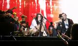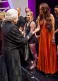 Miley Cyrus gently shakes the hand of Queen Elizabeth II following the Royal Variety Performance in Blackpool, England on Monday evening (December 7).