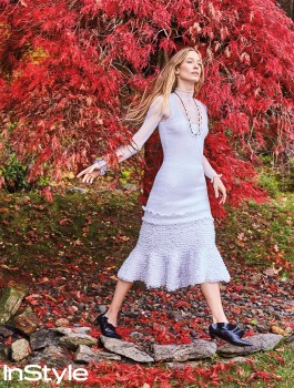 As for the rest of her wardrobe, Vojnović likes to mix it up. She arrived at the InStyle shoot in a black jumpsuit from Joe’s Jeans that she snagged from Marshalls for $40, paired with a cozy red Maasai blanket from Kenya draped across her shoulders like a shawl. Her interests outside fashion are equally eclectic and run the gamut from updating Eastern European recipes with unexpected ingredients (like bison from the green market near her New York City apartment) to kitesurfing in Hawaii. Yet nothing sparks so much passion in the model as discussing her craft of the past 22 years. “I love transforming myself for this job,” she says. “It’s what gives me life.”