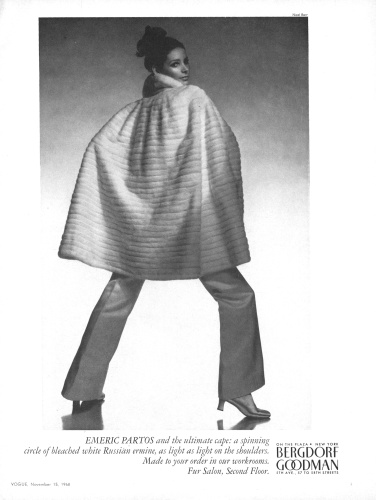 US Vogue November 15, 1968 Emeric Partos FW 68.69 for Bergdorf Goodman Photo Neal Barr Model Vicki Hilbert vogue